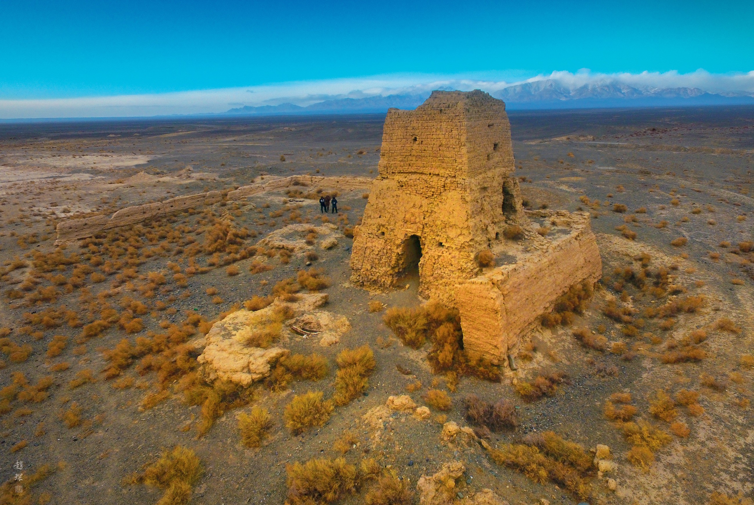 了(瞭)墩烽燧,位于新疆哈密市柳樹溝鄉牧業村西南約25千米的戈壁灘上,是了墩驛站的重要組成部分。烽燧西北向東南方向有一趟坎兒井,坎兒井是荒漠地區一特殊灌溉系統,與萬里長城、京杭大運河并稱為中國古代三大工程,是古絲綢西路上的命脈。守住了坎兒井,就守住了主權。其東有左功柳、水塘,東約10千米為砂墩子烽燧,西北25千米為一碗泉驛站遺址。了(瞭)墩烽燧為土坯修筑,臺體南北7.2米、東西6.4米。“了墩”實為“瞭墩”,唐代時修建,清代在此設立驛站,是當時哈密西八站之一,直至民國時期還在沿用。