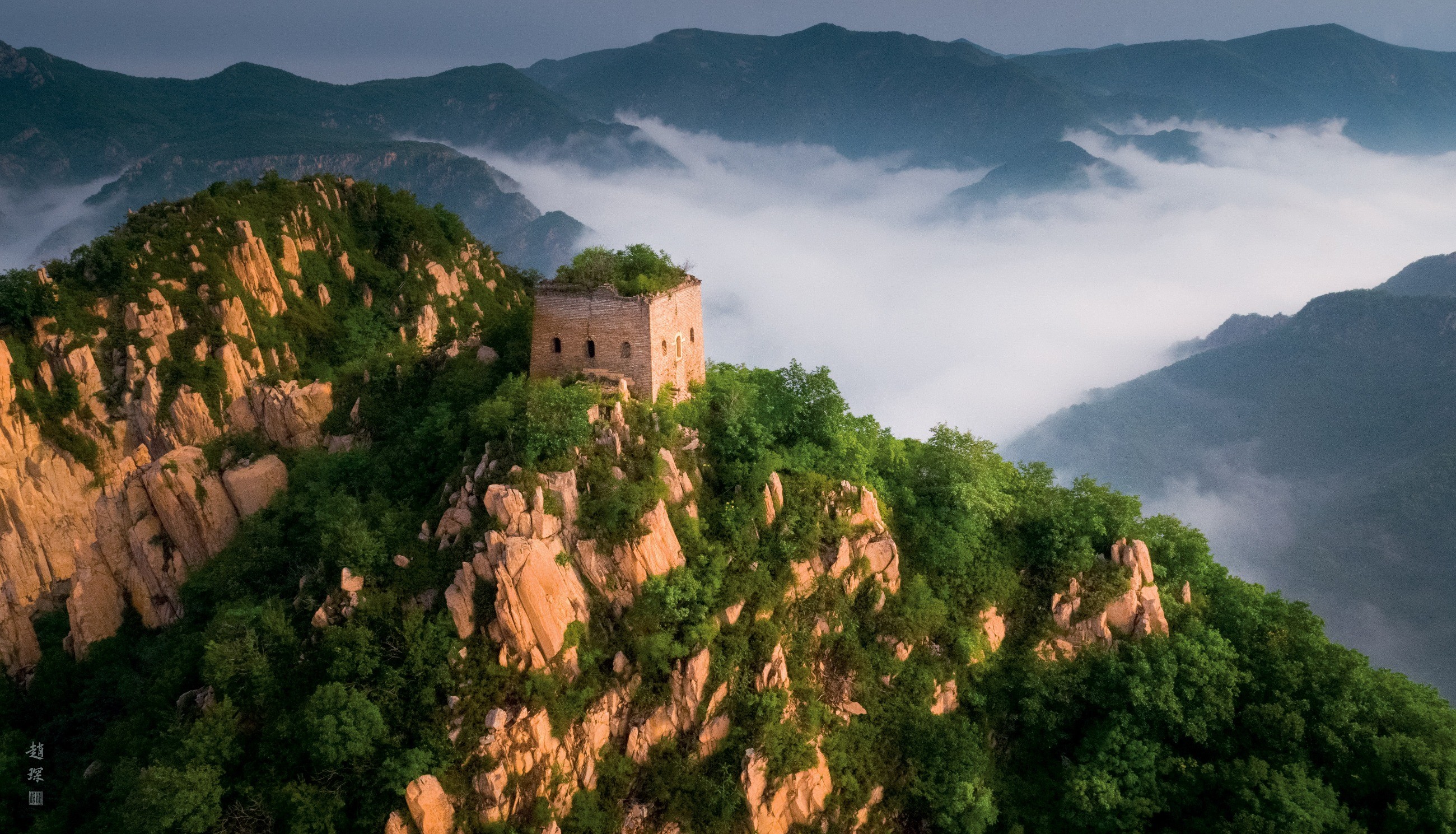 京東第一樓,原名“大尖樓”,是板廠峪長城的制高點(diǎn),山頂海拔880米,是北京以東最高敵樓,故名“京東第一樓”。因山高路險(xiǎn)不好攀登,保存基本完整。憑樓遠(yuǎn)眺,山川、平原、鄉(xiāng)村、都市、大海,盡收眼底,登樓方可體會(huì)詩人杜甫“會(huì)當(dāng)凌絕頂,一覽眾山小”的壯志。因此京東第一樓成為最理想的長城攝影之地,也是通往絲綢東路的重要第一樓。